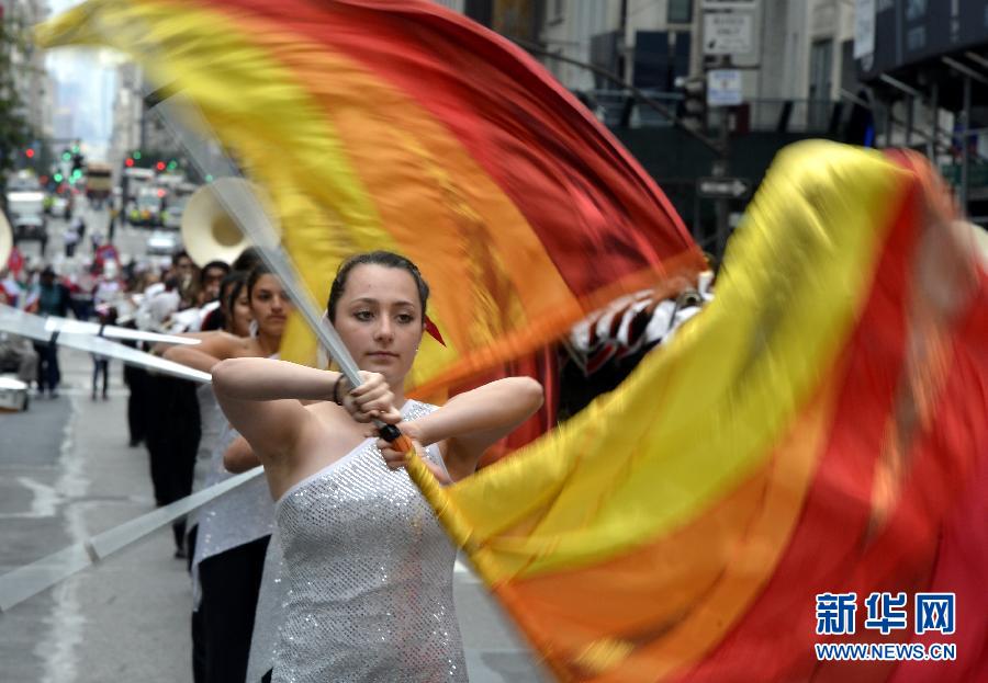 10月13日,参加哥伦布日游行的青少年在纽约曼哈顿第五大道表演。当日,美国纽约市举行第70届哥伦布日大游行,以纪念意大利航海家克里斯托弗·哥伦布1492年探险远征中首次发现美洲大陆。美国将10月的第二个星期一定为哥伦布日,1792年首次庆祝。纽约市于1929年举办首届哥伦布日游行。新华社记者王雷摄