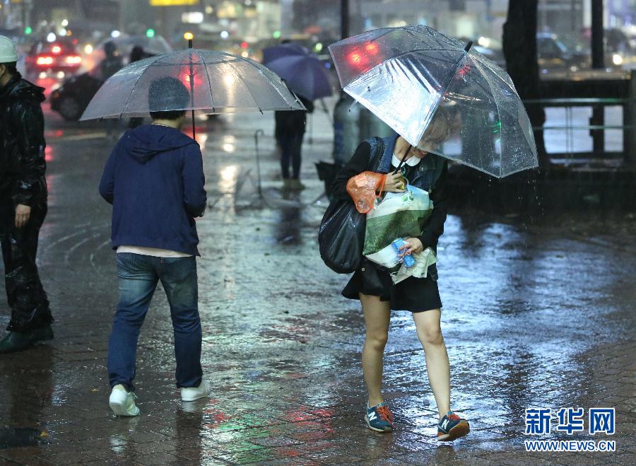 10月13日,在日本东京,行人在雨中行走。 13日夜间至14日凌晨,今年第19号台风“黄蜂”带来的狂风暴雨侵袭东京,日本大多数地区均发布暴雨警报。“黄蜂”13日上午在日本九州鹿儿岛县枕崎市附近登陆,目前已造成1人死亡,2人失踪,90多人受伤。新华社记者刘天摄