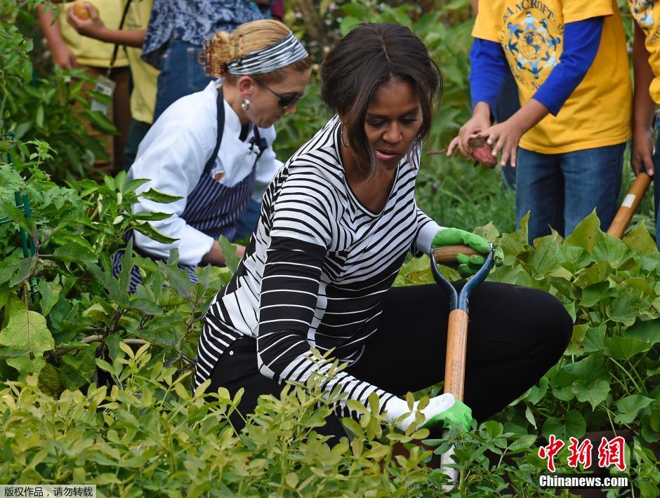 美第一夫人白宫花园忙秋收