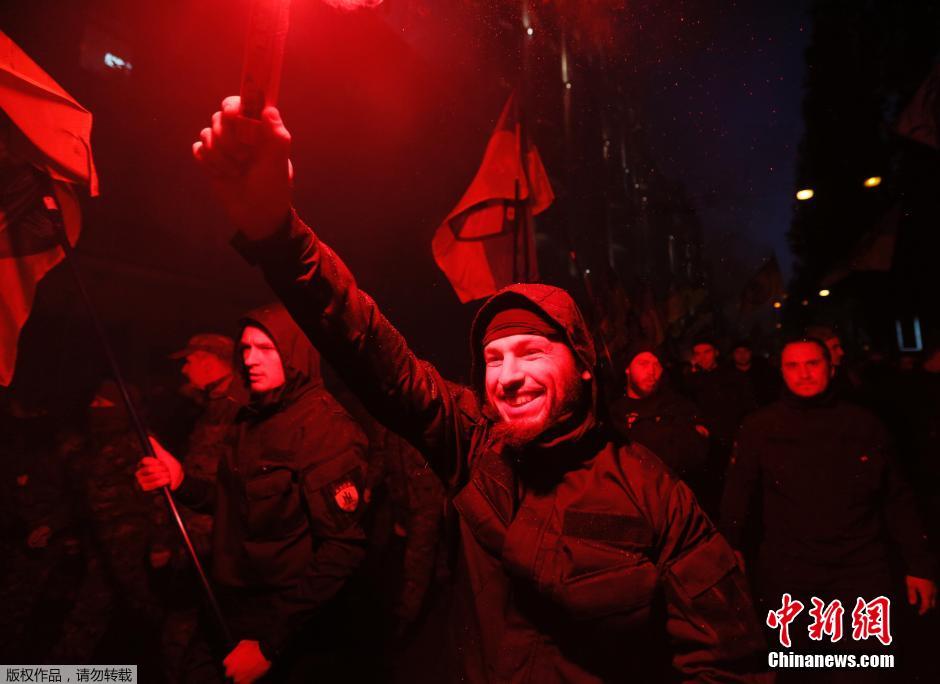 乌克兰反抗军成立72周年 支持者游行庆祝