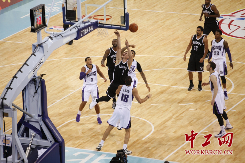 10月15日晚,NBA中国赛北京站的比赛在五棵松体育馆进行。经过加时赛,篮网队以129比117再次击败国王队。