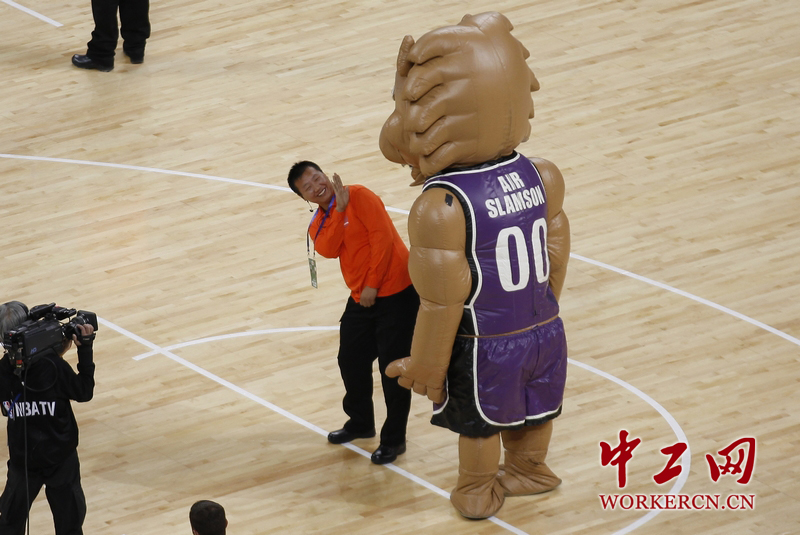 尽管全场观众齐声高喊篮网队当家球星加内特的名字,但他始终坐在场边未上场比赛,这让现场球迷大为失望。不过比赛最后阶段比分焦灼,加时赛让现场气氛达到高潮。图为吉祥物表演。中工网记者韩靖摄