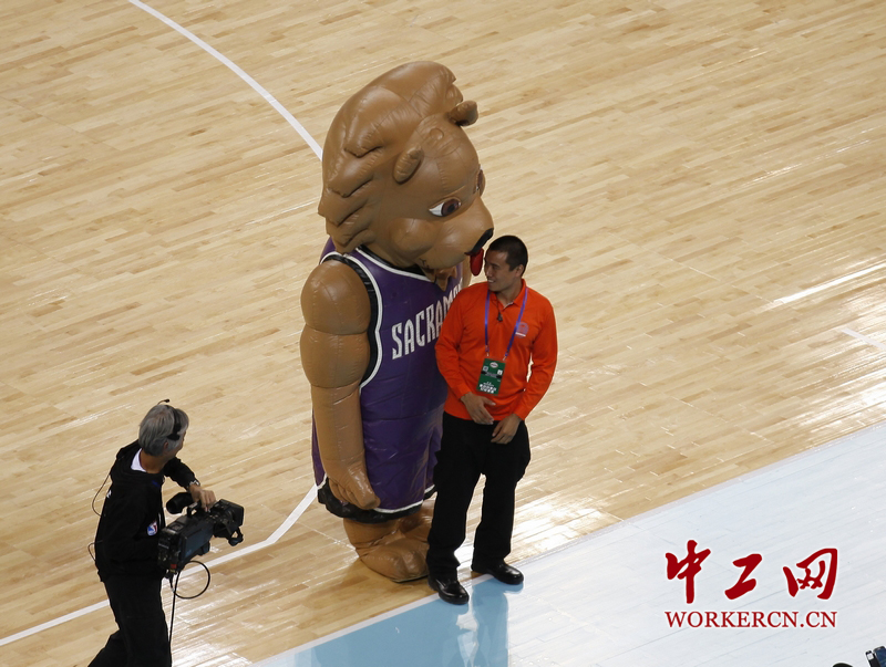 尽管全场观众齐声高喊篮网队当家球星加内特的名字,但他始终坐在场边未上场比赛,这让现场球迷大为失望。不过比赛最后阶段比分焦灼,加时赛让现场气氛达到高潮。图为吉祥物表演。中工网记者韩靖摄