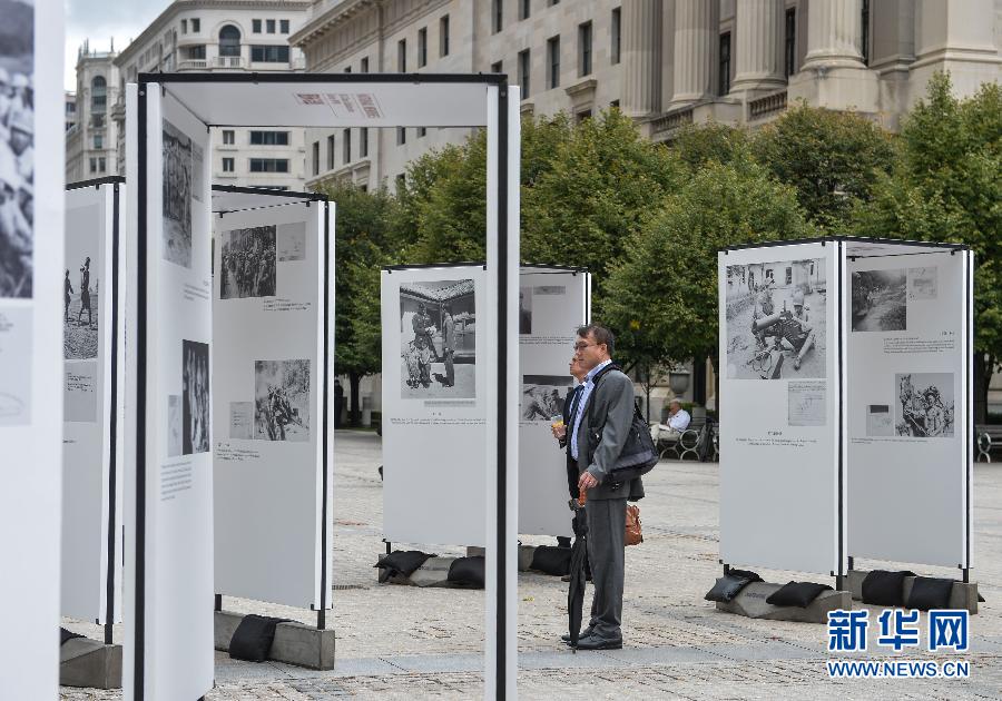10月15日,在美国首都华盛顿的威尔逊国际中心,人们参观展示第二次世界大战期间中国和美国协同抗战的“国家记忆——中美二战合作影像展”。 “国家记忆——中美二战合作影像展” 以美国国家档案馆馆藏美国通信兵团拍摄的历史图片为主,通过照片和史料展示了70多年前中缅印战场上中美两国士兵并肩战斗的珍贵场景。新华社记者鲍丹丹摄