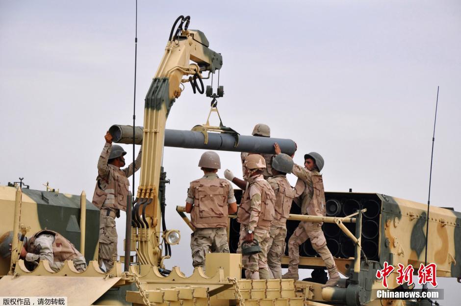 当地时间2014年10月14日,伊拉克巴格达,伊拉克军队士兵利用俄罗斯制造的多管火箭发射器TOS-1A进行军事训练,这架火箭发射器将被运至前线作战。