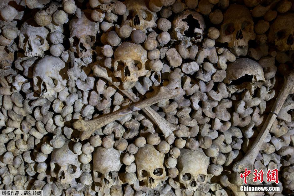 当地时间10月14日,法国巴黎,巴黎地下墓穴里层层堆叠起密密麻麻的骷髅,若你晚上探访此地,必会让你毛骨悚然。这个曾经为走私者和圣人提供庇护的地下洞群搁置着六百万名巴黎人的骷髅。据悉,该地下墓穴连绵187公里左右,贯穿整个巴黎。