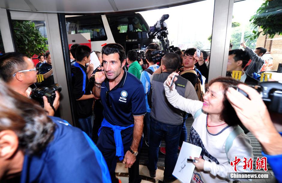 10月16日,由萨内蒂、菲戈、德约卡夫、托尔多等传奇球星领衔的意大利国际米兰传奇明星队造访武汉,作客中意足球传奇明星对抗赛新闻发布会,现场与来自全国各地的国米球迷互动交流。据了解,此次来到武汉的这支球队共由17人组成,他们曾携手为国际米兰摘下意甲、欧洲冠军杯等一系列荣耀,他们将于19日晚在武汉沌口体育中心对阵蔡晟、范志毅、高雷雷以及林强、刘伟等球员组成的湖北老甲A队。中新社发 张畅 摄