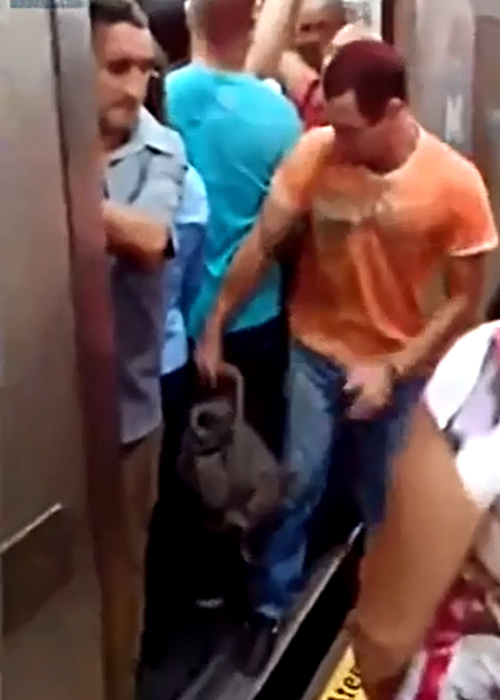 男性太「雄伟」可能会造成困扰!巴西一名男子在搭地铁时,因为人潮众多好不容易挤进车厢中,但站在门口边缘的他,却不料因为下面“太突出”而被门卡住,好险之后有人硬是把门扳开,才让他松了一口气。这个令人感到「疼痛」的片段被上传到网上后也引起讨论。图为现场视频截图。