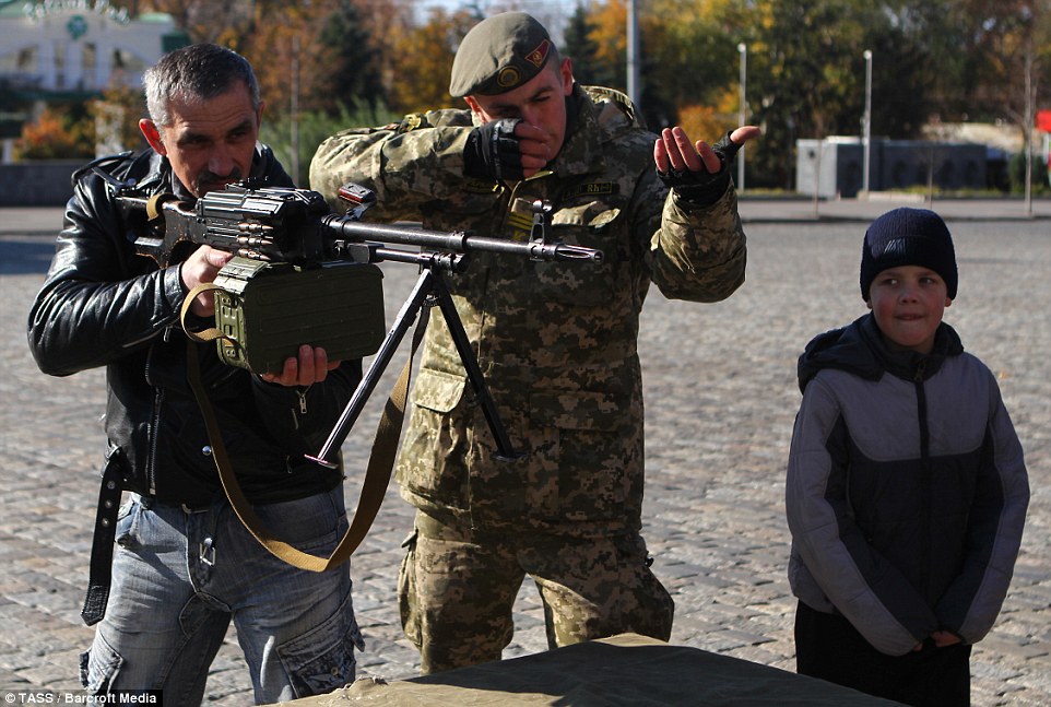 据英国《每日邮报》10月20日报道,乌克兰哈尔科夫,在“保卫国家”活动上,乌克兰民众在街头向士兵学习如何使用重型武器。因与“顿涅茨克人民共和国”毗邻,这项活动的目的旨在增强国家防御能力。(网页截图)