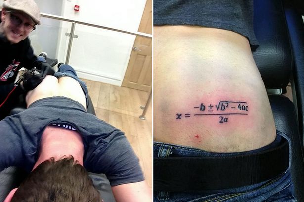 柯克曼和同学打赌他第三次考试考不到B,就在屁股上纹数学公式。
