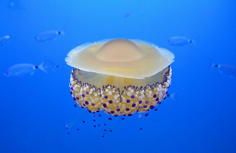 这种特殊水母的学名就叫蛋黄水母(Cotylorhiza tuberculata)(网页截图)