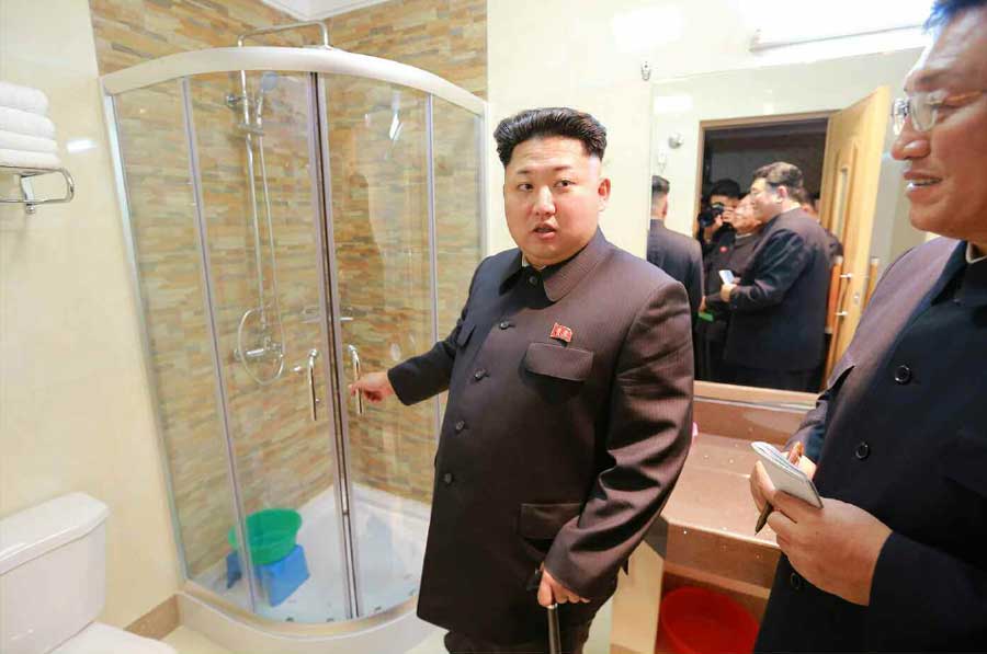 据朝鲜《劳动新闻》10月22日报道,朝鲜领导人金正恩拄拐视察位于平安南道已竣工的科学家休养所,笑容满面精神奕奕。图片来源:朝鲜《劳动新闻》