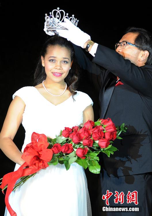 当地时间10月21日晚,2015年美国帕萨迪纳玫瑰皇后新鲜出炉,17岁的高中生麦迪逊-特里普利特脱颖而出。本次美国帕萨迪纳玫瑰皇后与玫瑰公主产生于700名参赛者中,她们将引领2015年1月1日举行的主题为“励志的故事”第126届玫瑰花车大游行。本届赛事唯一华裔玫瑰公主邵霞在父亲邵闻的陪伴下登上颁奖台。 中新社发 毛建军 摄