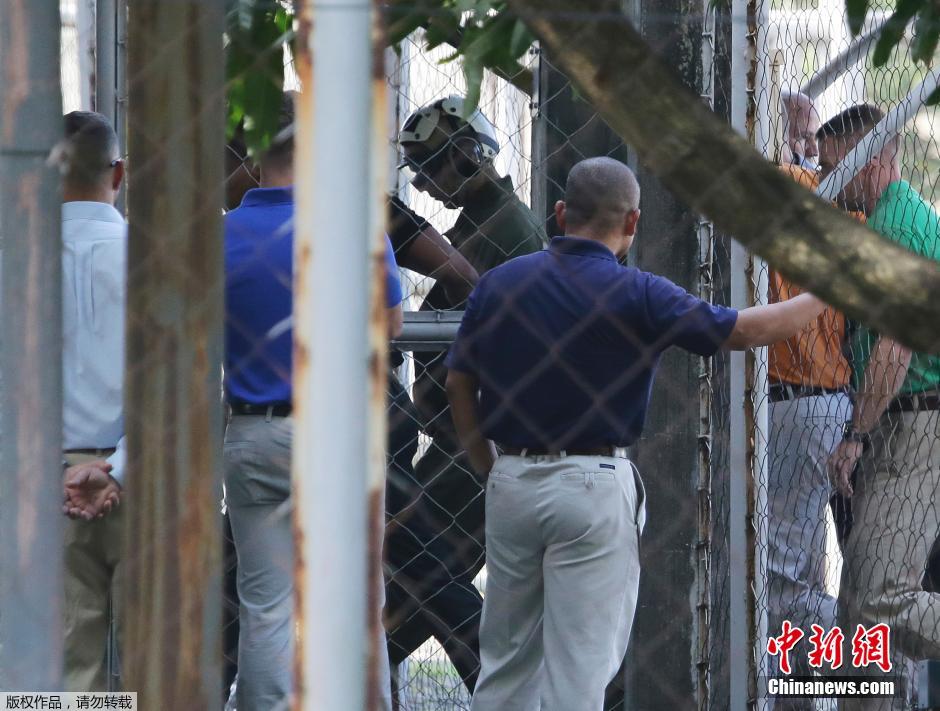 当地时间2014年10月22日,菲律宾苏比克湾自由港,被指控杀害了菲律宾变性人劳德(Jeffrey Laude)的美国海军士兵一等兵彭伯顿(Joseph Scott Pemberton)抵达菲律宾,将被押送至马尼拉北部奥隆阿波市的军营。