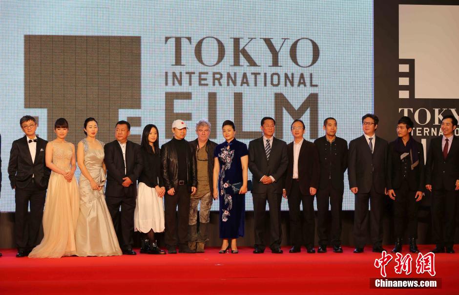 10月23日,第27届东京国际电影节开幕。参加该电影节期间举办的“2014东京-中国电影周”的中国嘉宾,一同亮相东京电影节开幕式红毯秀。中新社发 高越 摄