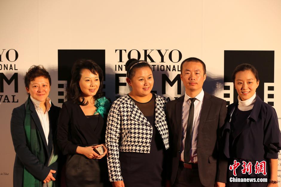 10月23日,第27届东京国际电影节开幕。中国导演李睿珺执导的《家在水草丰茂的地方》等15部影片入围主竞赛单元,竞逐本届电影节最佳影片金麒麟奖等奖项。图为《家在水草丰茂的地方》剧组成员在开幕式红毯秀上亮相。中新社发 高越 摄