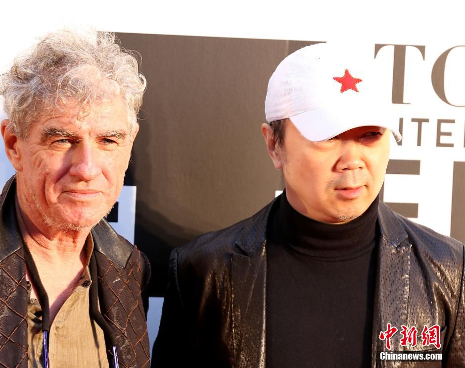 10月23日,第27届东京国际电影节开幕。在本届电影节期间举办的“2014东京中国电影周”上映的影片《蓝色骨头》的导演崔健(右)、摄影杜可风(左)亮相当天的东京电影节开幕式红毯秀。中新社发 高越 摄
