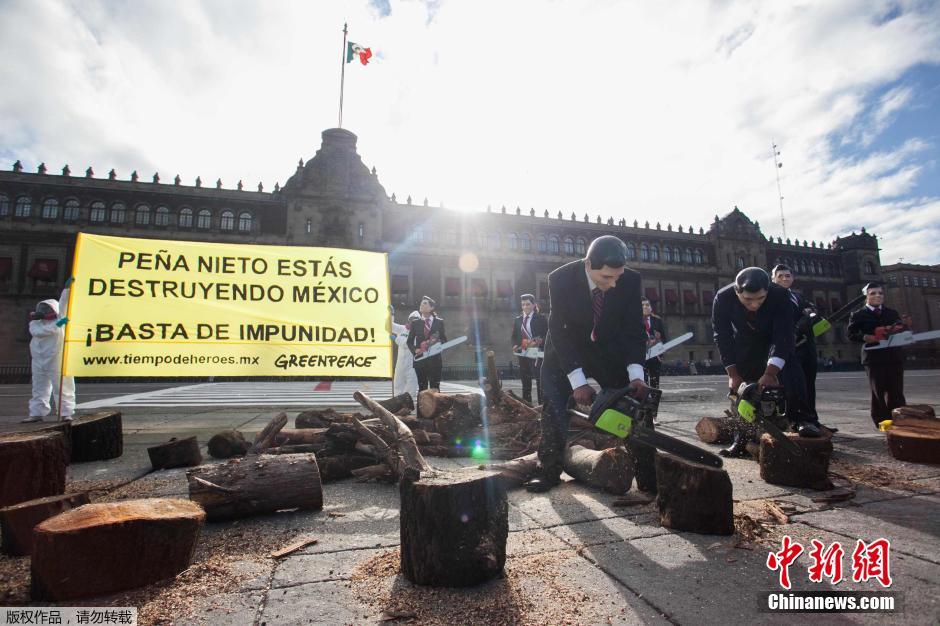 绿色和平组织扮墨西哥总统模拟“溢油”