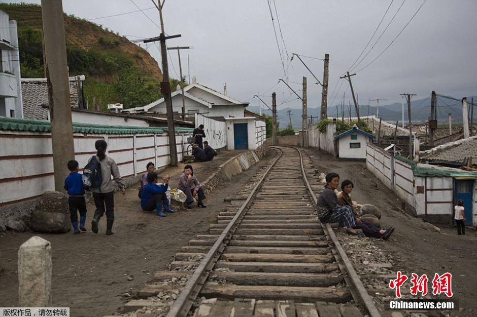 当地时间10月23日,当地妇女和她们的孩子在铁道边休息玩耍。