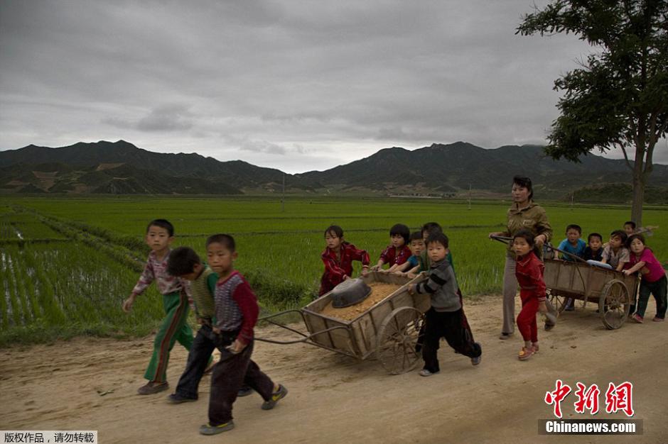 当地时间10月23日,朝鲜小学生在咸镜北道省农村的小道上。