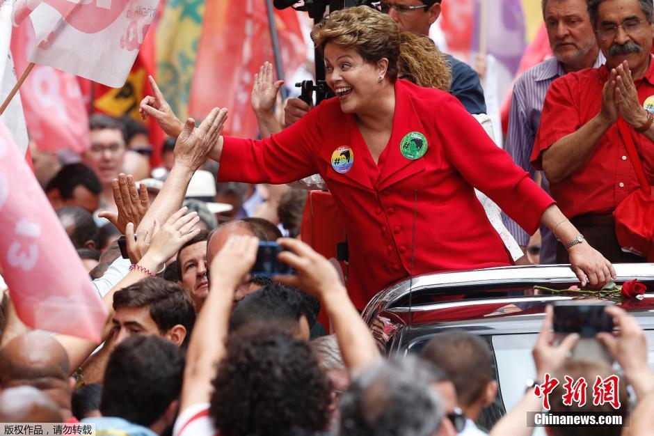 当地时间2014年10月25日,巴西阿雷格里港,总统罗塞夫问候支持者。