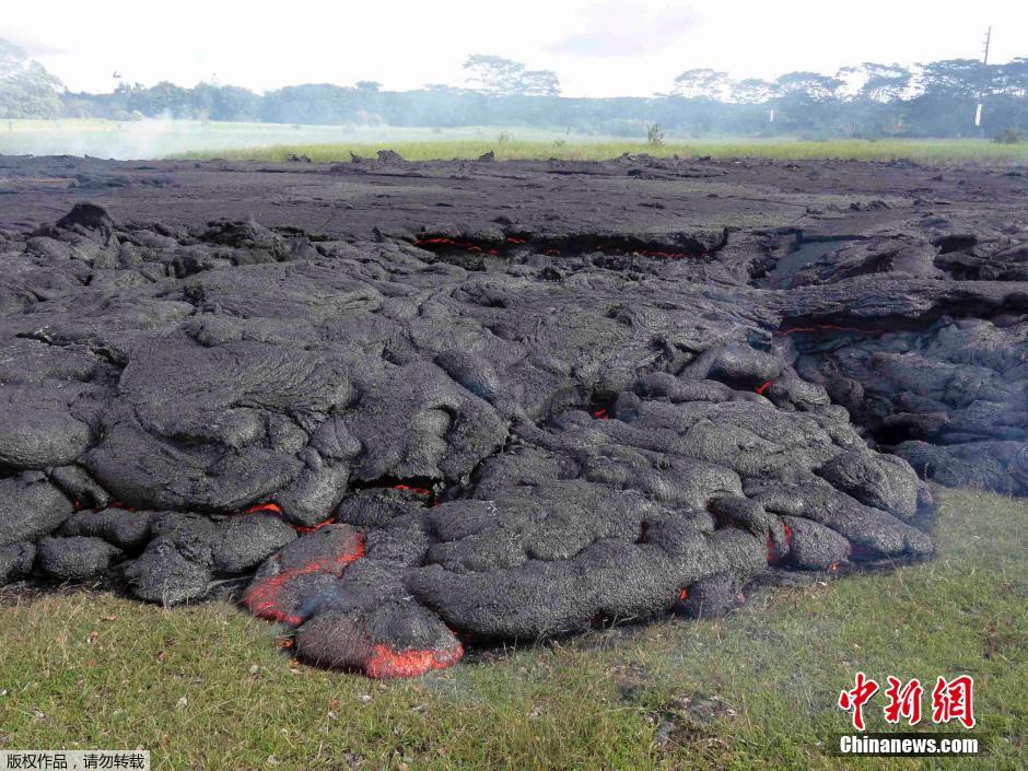 当地时间2014年10月,美国夏威夷基拉韦厄火山涌出的岩浆已经蔓延到乡村公路,逼近Pahoa村。基拉韦厄火山的熔岩从6月27日开始不断涌出,目前逼近的社区里居住着约4000人。