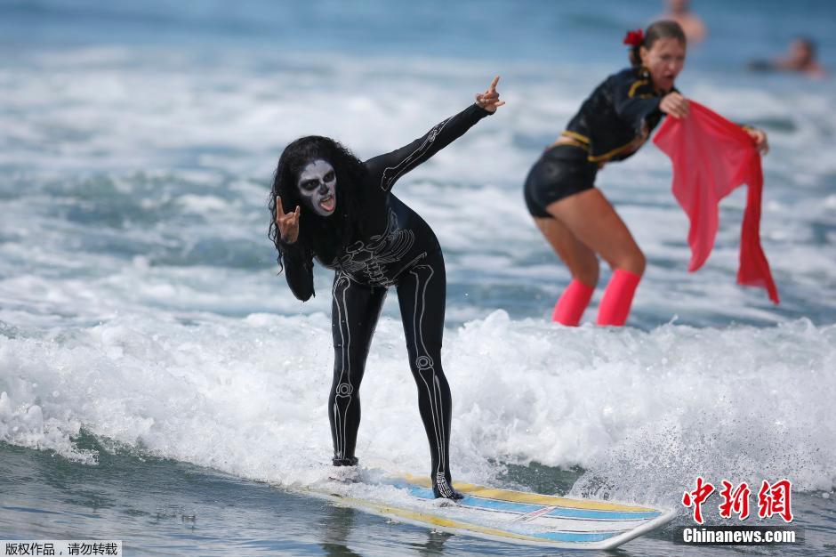 加州万圣节冲浪赛 选手奇葩造型超吸睛