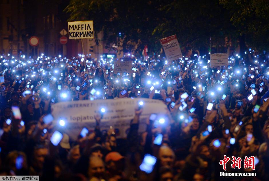 匈牙利数千人举手机 抗议网络流量征税