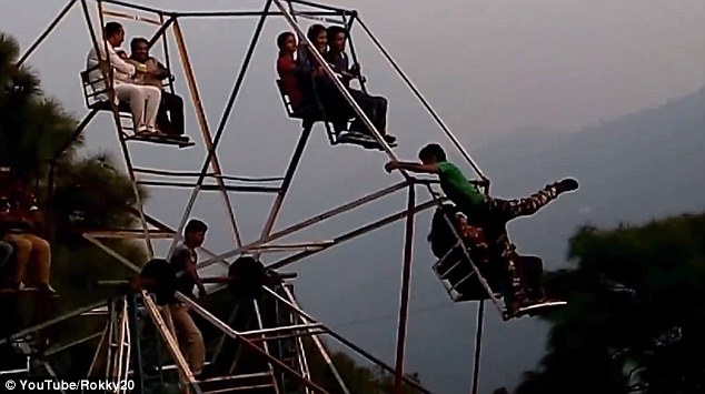 据英国《每日邮报》10月27日报道,印度游乐园雇用男性壮劳力推动摩天轮运转,看起来就像仓鼠的滚轮一样。(网页截图)