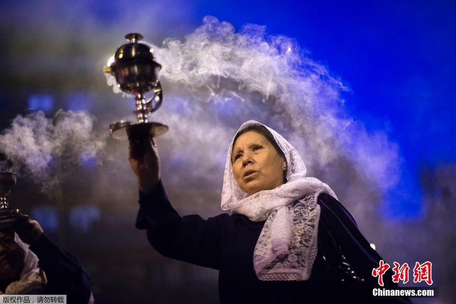 当地时间2014年10月26日,西班牙马德里,旅居西班牙的秘鲁人聚集在马德里参加庆祝“奇迹之神”的宗教巡游活动。“奇迹之神”是大多数秘鲁天主教徒的守护神,在秘鲁首都利马每年都会在天主教节日中举办此类活动。
