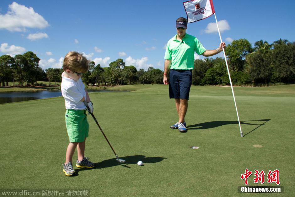 当地时间2014年10月报道,3岁独臂男孩汤米-莫里西在打高尔夫球方面有着惊人的天赋,他的高尔夫球挥杆技术令许多成年人都自愧不如。据悉,莫里西出生时就只有一只手臂,虽然还是个孩子,但是他可以将球击出100码(约91.4米)外。莫里西的父母都是高尔夫球爱好者,而莫里西13个月时就开始看电视上的高尔夫球比赛,18个月时他就观察并模仿电视里的运动员打高尔夫。