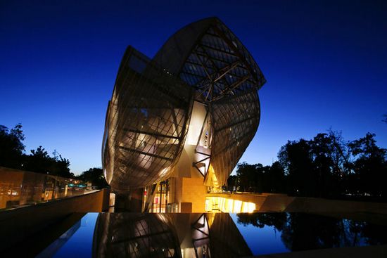 与另一位美国设计师贝聿铭不同——后者给卢浮宫设计的玻璃金字塔位于香榭丽舍大道的轴线上,盖里完全没有理会法国的几何传统。“大量的玻璃运用,与大自然的几何图形和公园的英式风景形成了应答关系,”他在谈到布洛涅林苑时说道。“大自然表面看起来乱,其实乱中有序。”
