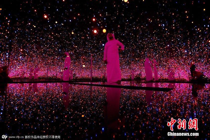 当地时间2014年11月2日,阿拉伯联合酋长国萨迪亚特岛,艺术家Yayoi Kusama的光影作品“无限空间之辉煌人生”进行预展。