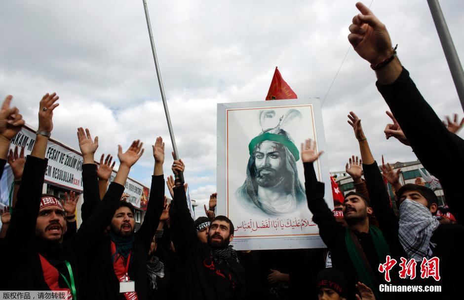 当地时间2014年11月3日,土耳其伊斯坦布尔,什叶派穆斯林男子抽打胸膛,纪念阿舒拉节。