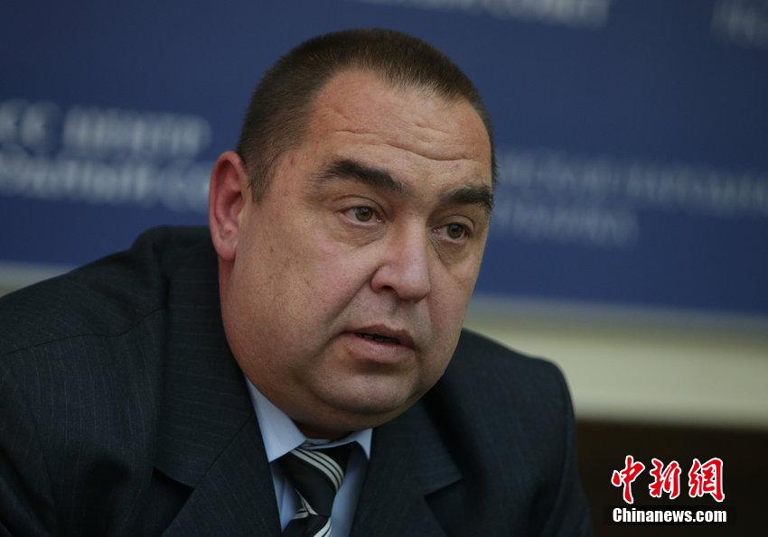 当地时间2014年11月3日,乌克兰卢甘斯克,伊戈尔·普罗特尼茨基当选“卢甘斯克”总统,出席新闻发布会。