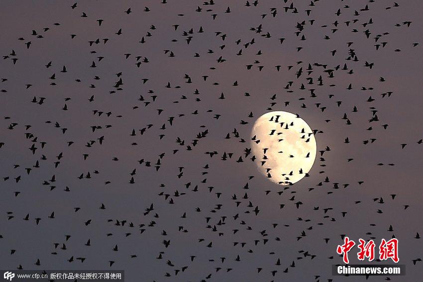 当地时间2014年11月3日,罗马,约100万只椋鸟群体迁徙,浩浩荡荡尤为壮观。