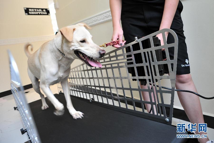 11月4日,一只小狗在新加坡首家宠物豪华酒店内使用跑步机。新加坡首家宠物专属的五星级酒店将于11月中旬正式开张。宠物不仅能够住进“皇家套房”,还能享受SPA、美容、游泳等专项服务,甚至出入酒店还有礼宾车接送。邓智炜 摄 图片来源:新华网