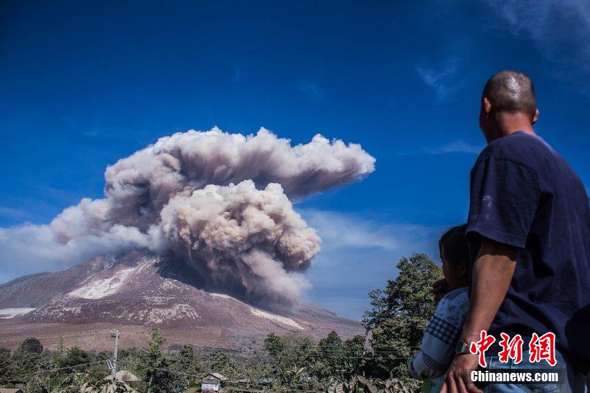 当地时间2014年11月9日,印尼北苏门答腊省,印尼锡纳朋(Sinabung)火山喷发。