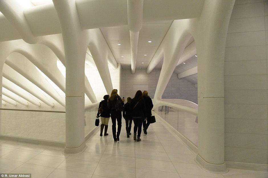 据英国《每日邮报》11月9日报道,耗资14亿美元的世贸中心交通枢纽正式开通运营。连接世界贸易中心到曼哈顿下城的9条地铁线路,每天可接待30万乘客,目前已有部分商户和企业进驻世贸中心办公。(网页截图)
