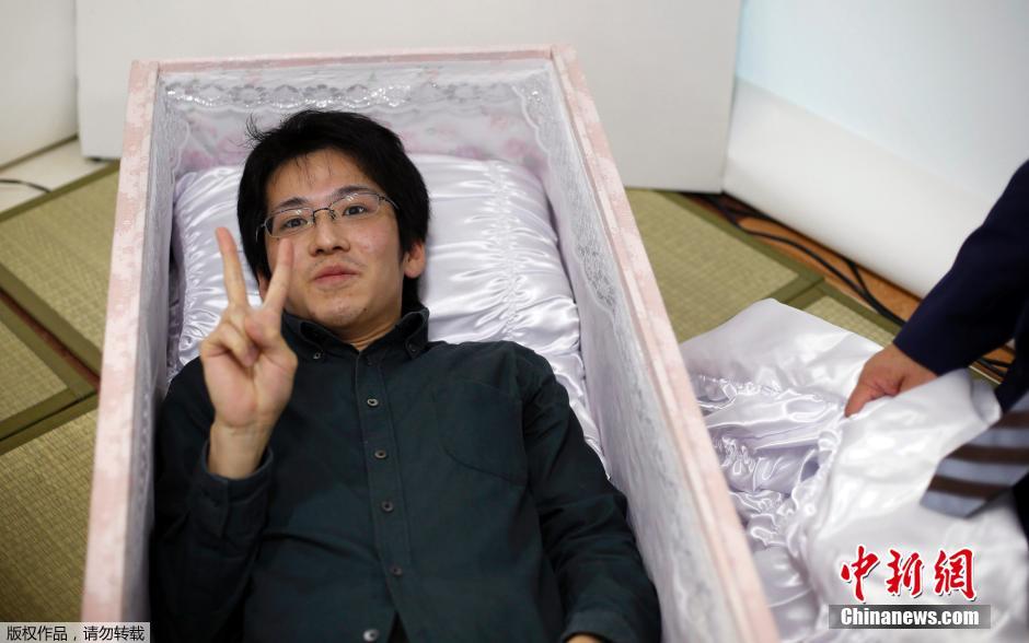 当地时间10月24日,日本葬礼行业提供超前服务,民众可以试穿寿衣,试躺棺材,拍遗照等殡葬服务。