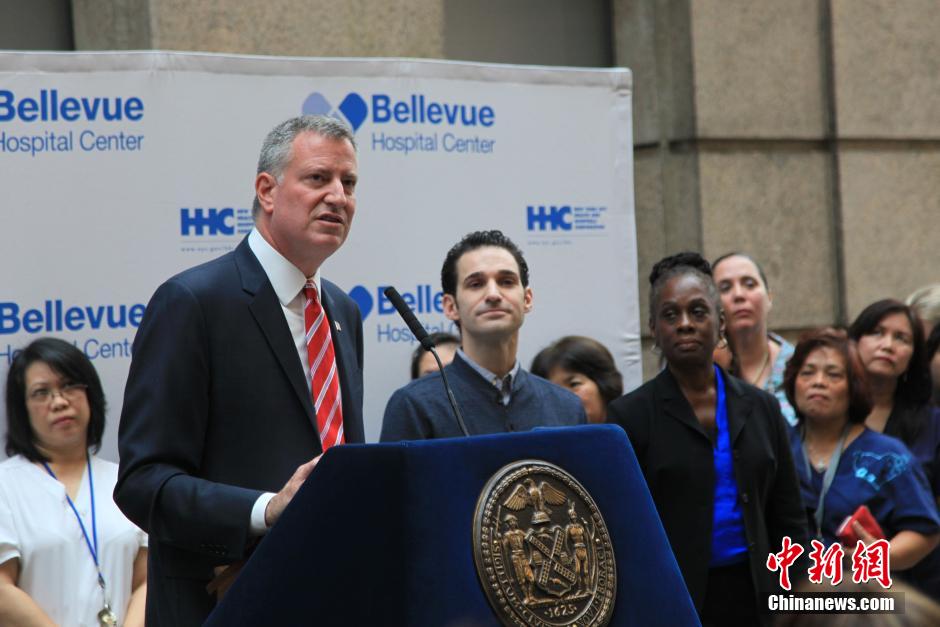 “斯宾塞医生没有埃博拉病毒了,纽约也没有埃博拉病毒了!”11日上午,在医护人员的掌声和欢呼声中,纽约市市长比尔·德布拉西奥在纽约贝尔维尤医疗中心(Bellevue Hospital Center)举行的新闻发布会上,宣布纽约首位也是目前唯一的埃博拉病毒感染者痊愈。