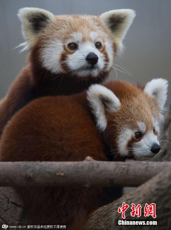 当地时间2014年11月13日,斯洛伐克首都布拉迪斯拉发,当地市立动物园里两只四个月大的小熊猫幼崽Pim和Pam吸引了人们的眼球。