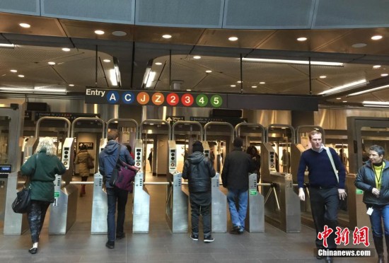 从本周开始,历时10年、耗资14亿美元重金打造的纽约富尔顿中心(FultonCenter)地铁站正式投入使用,它是目前纽约最大的地铁站。该地铁站的设计充满现代感,尤其是地铁站内顶部直径达16米的圆穹形天幕,可引入自然光,使整个大厅显得富丽堂皇。中新社发阮煜琳 摄