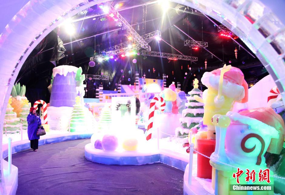 当地时间11月14日,美国著名卡通形象海绵宝宝的水下世界以冰雕形式再现。美国南部海湾滨海地区唯一冰雕展“冰雪海岛”,将于11月15日至2015年1月首次与美国南部地区的观众见面。来自中国哈尔滨、在国际上广受赞誉的31位冰雕艺术家于得克萨斯州加尔维斯顿岛穆迪花园进行了45天创作,在2.8万平方英尺的低温帐篷中将900吨冰转化为高大、绚丽的艺术作品,呈现给大家一个独特的梦幻的冰雪世界。在得州度过一个冰雪圣诞将不再是件意想天开的事。中新社发 王欢 摄