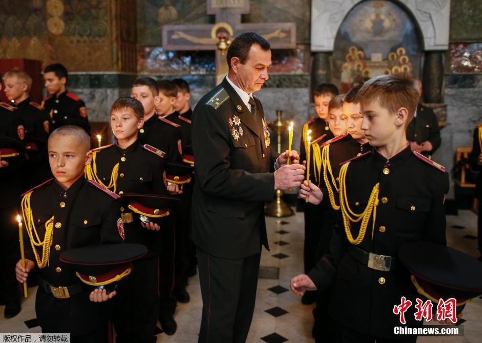 当地时间2014年11月14日,乌克兰首都基辅,近100名童子军在基辅Pechersk Lavra修道院参加宣誓仪式。