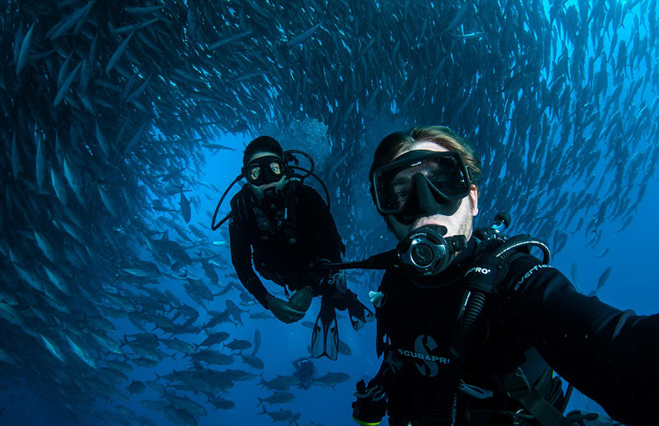 据英国《每日邮报》11月14日报道,澳大利亚一对夫妇近期在墨西哥潜水时被大规模鱼群“包围”,他们用照相机镜头记录下了当时震撼人心的景象。图片来源:国际在线