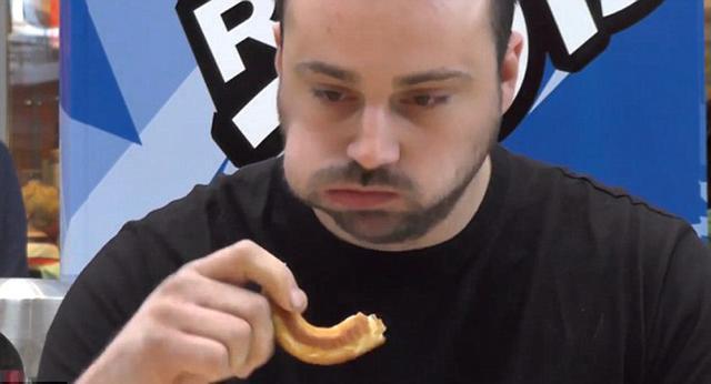 据英国《每日邮报》11月14日报道,为了庆祝13日的吉尼斯纪录日,2名德国男子尝试创造新的世界纪录。他们挑战不喝水最快吃椒盐卷饼纪录,最快速度为1分42秒吃掉一个。(网页截图)