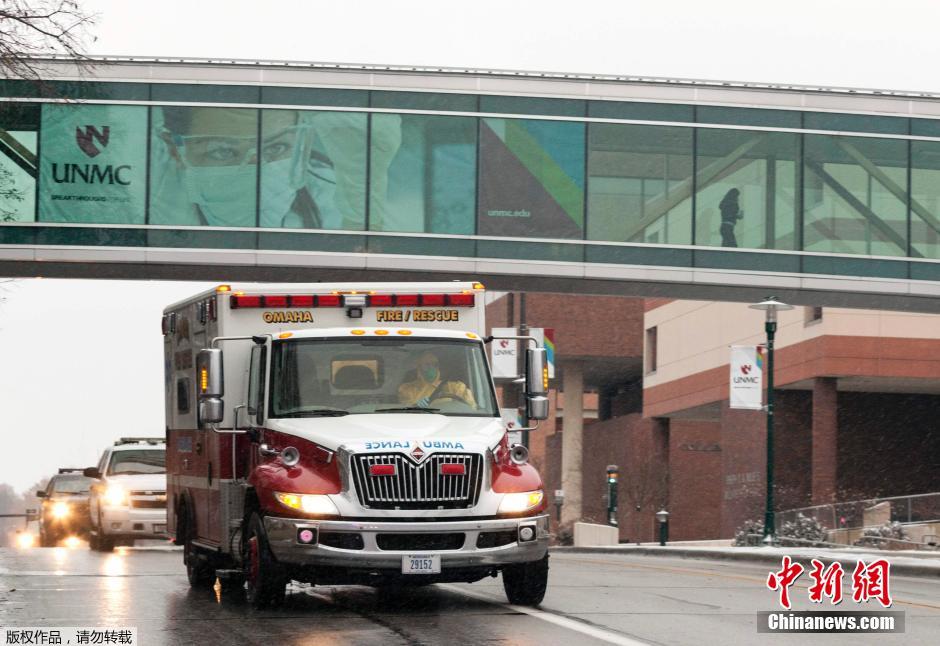 当地时间2014年11月15日,美国奥马哈,一名在塞拉利昂感染埃博拉病毒的美国医生抵达奥马哈市接受治疗。他来自塞拉利昂,但身份为美国永久居民。