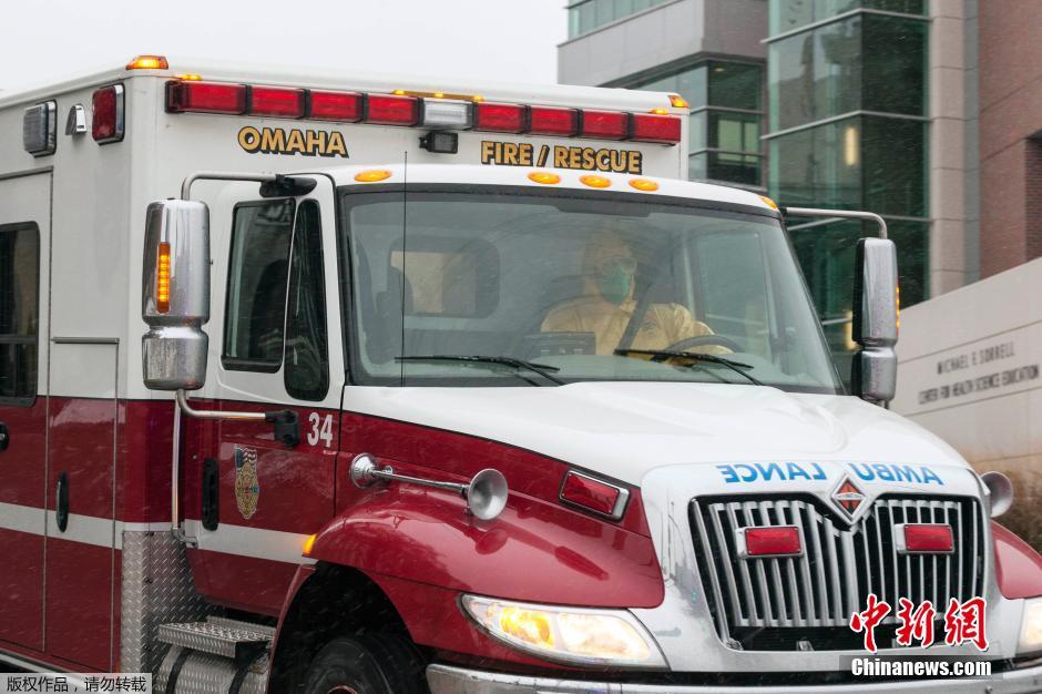 当地时间2014年11月15日,美国奥马哈,一名在塞拉利昂感染埃博拉病毒的美国医生抵达奥马哈市接受治疗。他来自塞拉利昂,但身份为美国永久居民。