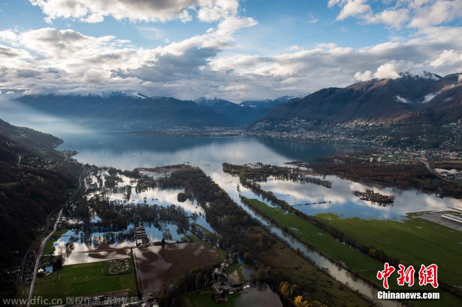 当地时间2014年11月16日,瑞士南部提契诺州降雨不断,造成卢加诺湖数处决堤,该地区主要交通干道已经封闭,部分地方的居民被紧急疏散。一农场遭洪水围困成“孤岛”。